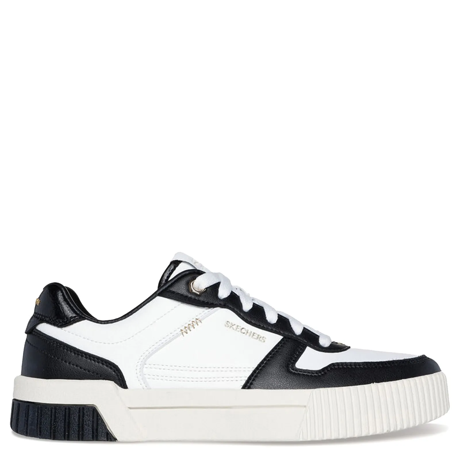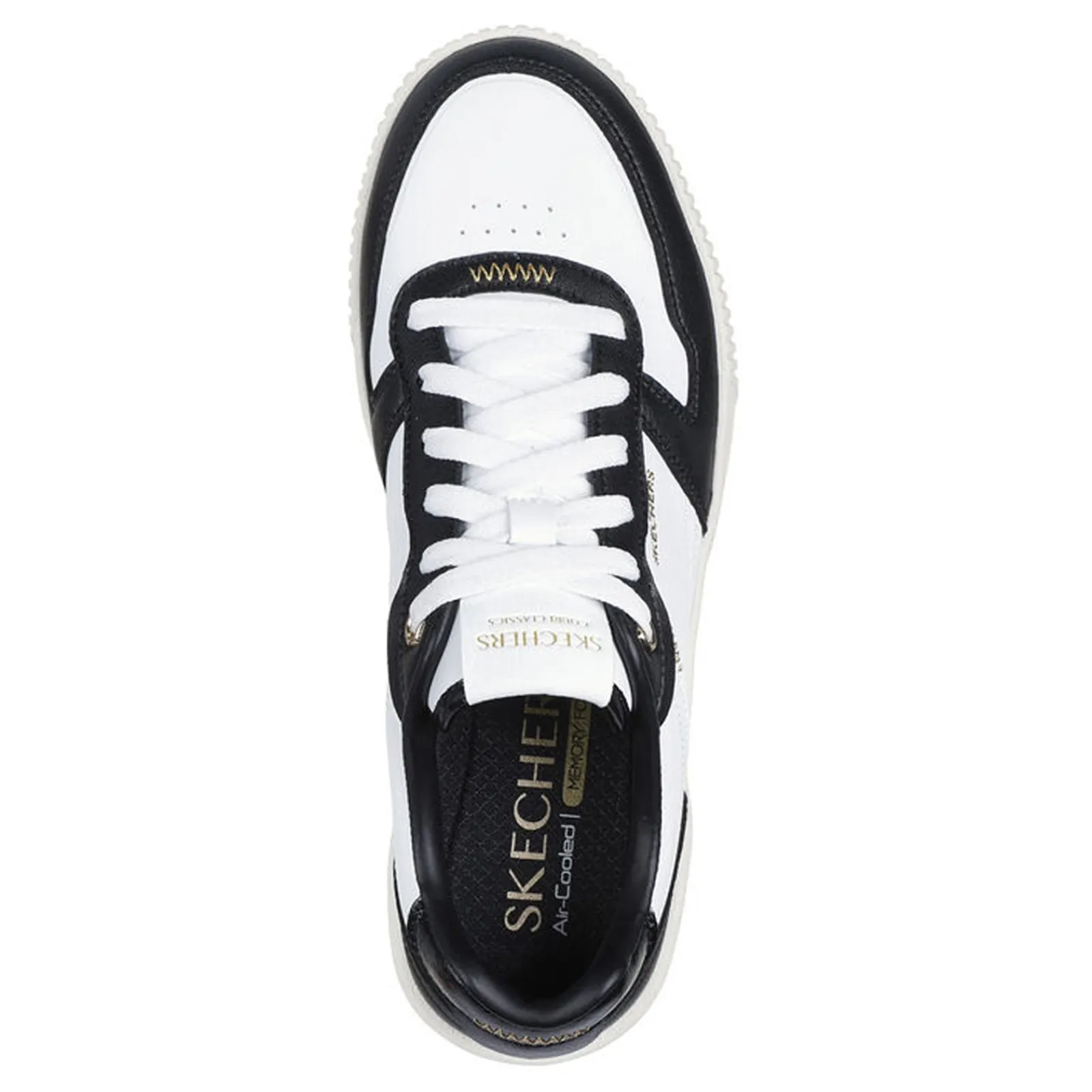 Step up your style with the Skechers Jade – Best In Class sneakers. These low-top lace-ups feature a duraleather upper with gold-colored overlays, a vulcanized midsole, and a cushioned Skechers Air-Cooled Memory Foam insole for all-day comfort.